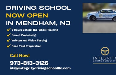 Welcome to Integrity Driving School LLC, your trusted partner in nurturing responsible and safe drivers in Morris County. As a new start up business, we are driven by a passion for teaching essential skills and defensive driving techniques to individuals aged 16 and older. We are committed to providing you with an extraordinary learning experience, ensuring your journey towards attaining a driver's license is both enjoyable and secure. Join us on the road to responsible and confident driving!